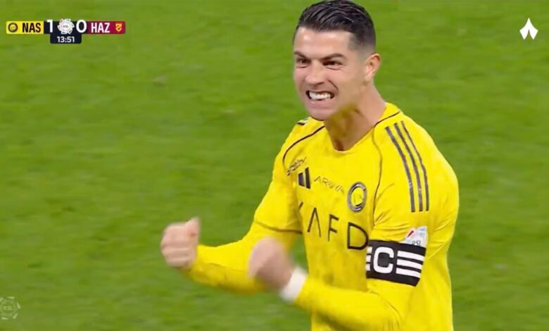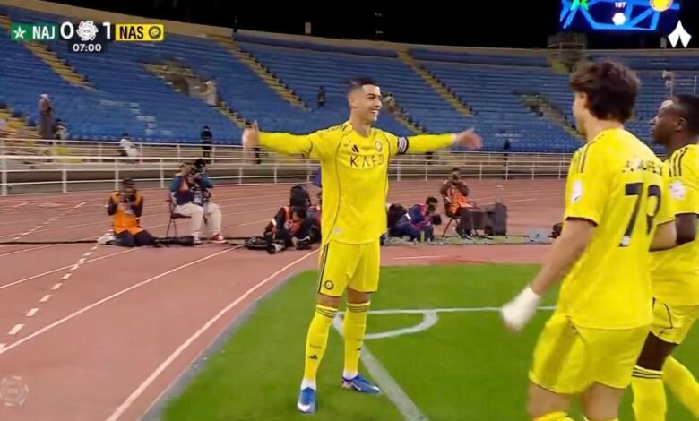 شاهدوا ركلة الجزاء الصاروخية التي نفذها كريستيانو رونالدو في مباراة النصر والنجمة واحتفاليته الجديدة التي فاجأت الجماهير بعد الهدف