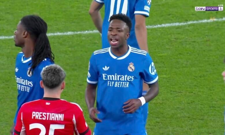 المعلق حفيظ الدراجي يخرج عن المألوف علي الهواء مباشرة ويتلفظ علي بريستياني لاعب بنفيكا بسبب حادثة الحركات العنصرية المسيئة التي قام بممارستها مع فينيسيوس جونيور في هذا المشهد