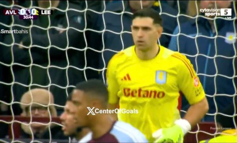 الركلة الحرة التاريخية التي أرعبت الحارس الارجنتيني ايميليانو مارتينيز ومززقت شباكه بطريقة جنوونية بعد صااروخية بالقرب من منتصف الملعب من لاعب ليدز يونايتد