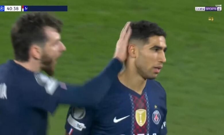 شاهدوا هدف حكيمي الجنووني والعالمي في مرمي موناكو في ملحق دوري أبطال أوروبا، وردة فعل إنريكي الجنوونية وتفاعله القوي وإحتفاله الهيستيري بالخرافة المغربية التي حدثت من زاوية شبه مستحيلة