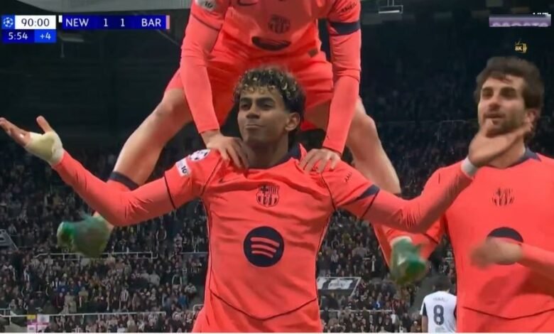 شاهدوا هدف لامين يامال الحاسم والدرامي في مرمي نيوكاسل الذي أنقذ برشلونة من الخسارة بدوري ابطال اوروبا وانفجااار المعلق خليل البلوشي وقصيدته التاريخية التي ابتكرها من أجل لامين علي الهواء مباشرةً