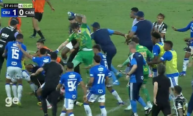لأول مرة في التاريخ الحكم يطرد 23 لاعباً دفعة واحدة في البرازيل بسبب ما حدث بين لاعبي اتليتكو مينيرو وكروزيرو في نهائي كأس مينيرو!